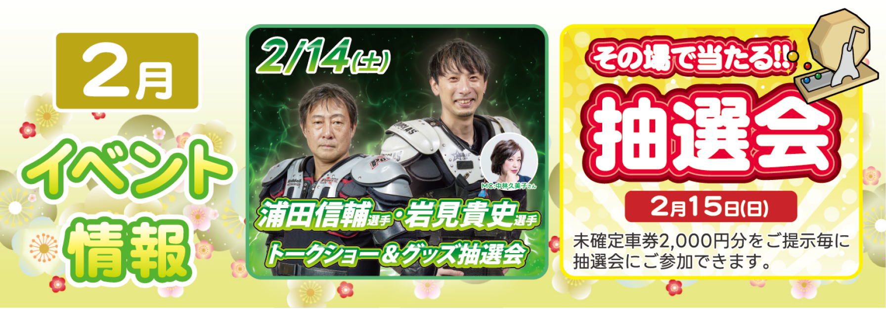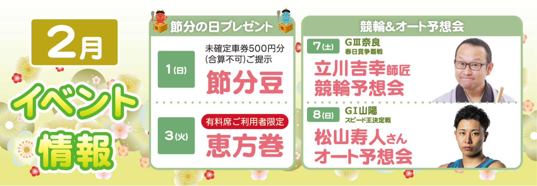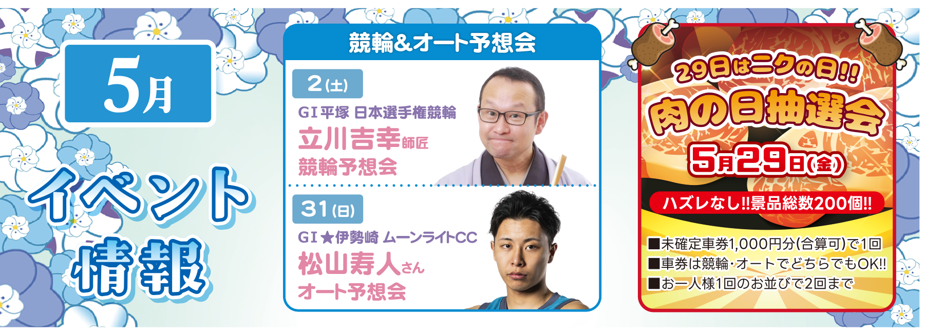 競輪/オートレース選手のトークショーや、レースに通じた予想家の予想会、抽選会など