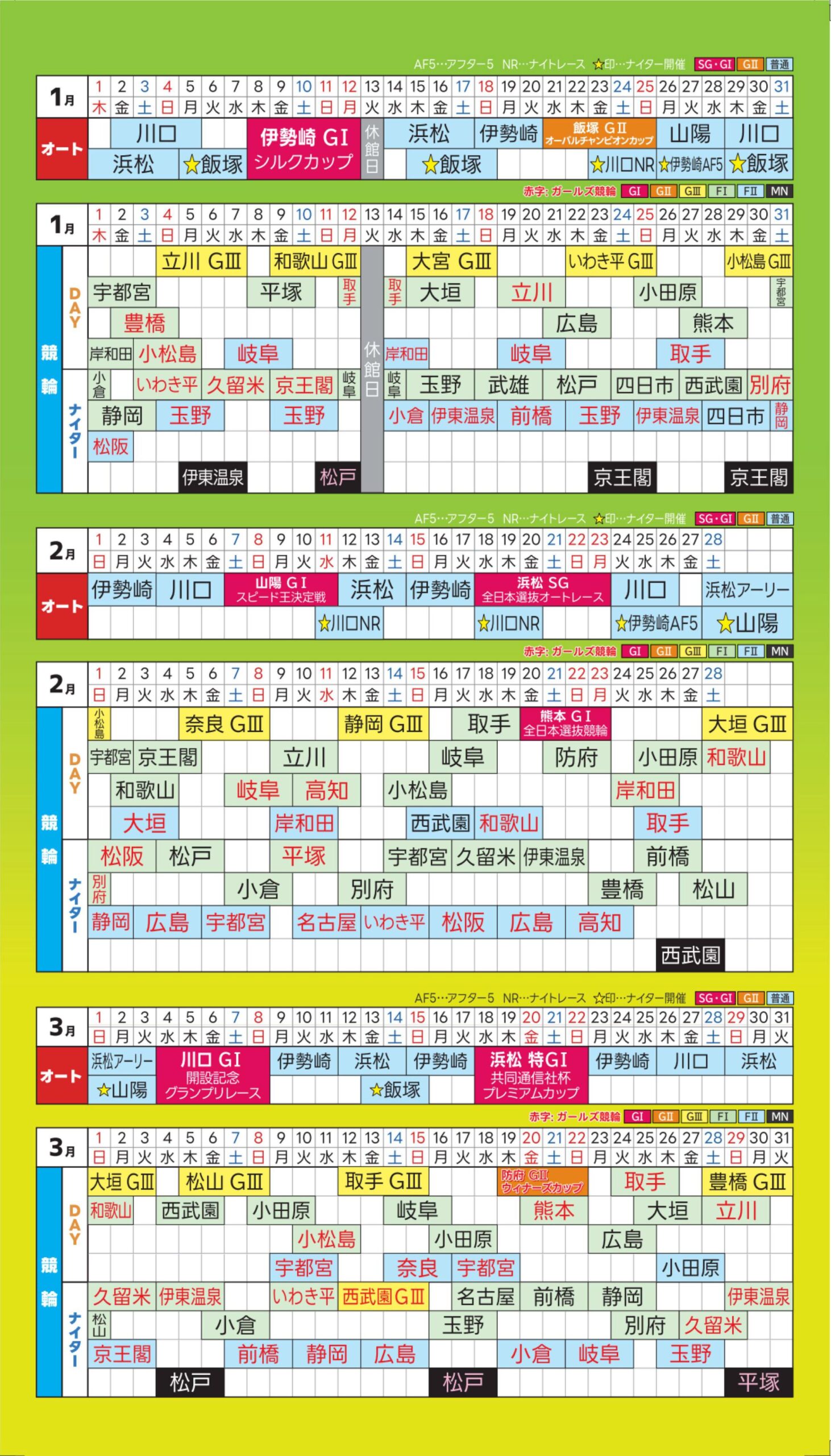 今後のレース開催日程